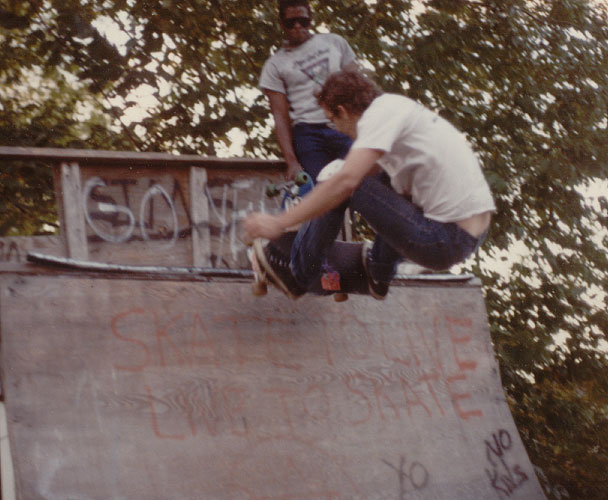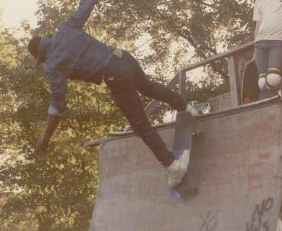 Adam Graham had a way fun half-pipe in his backyard. That ramp was located over off Hemlock in Stonybrook. It was 8' wide and had kinda odd eliptical transitions. The ramp used to belong to .....damn.. forgot his name but I do remember the ramp did live over on Torrey St. A few years prior, the then owner wanted to get rid of it. So Adam and a few of his BIG friends went over and got that ramp out of the backyard. They loaded it up on a truck and took it back to Adam's house. The frame was strengthened up a bit and a fresh layer of plywood was put down. He always had some funky coping tho. I remember things like broom sticks, wood corner molding. angle iron or just about anything you could pop off of. MANY great sessions took place on that ramp. Adam rarely wore any pads. He always said, "Only thing I need is my sunglasses". He and Lee would just rip that ramp up! They both had a wild style that was totally their own. Kinda sketchy... always edgy..and they could both pull moves out of thin air! They had been skating together for years and it showed. I remember skating there several times. The grill would be going, music playing loud and a whole bunch of neighbors came out to party and watch the skating. Adam was very popular in his 'hood. Everybody knew him and he knew everybody. Enough said.
