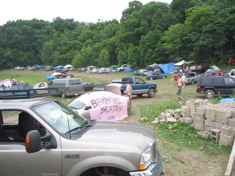 BOWL BASH 10 is now in the history books. Pretty much like all the other parties. Awesome skating, TONS of friends, good vibe ... just skaters doing what skaters do. I have two stories that I wrote on my previous visits to Skatopia. One about "BOWL BASH 9" and one on the "BACKWOODS BLOWOUT 10". Pick one and apply it to this party. If you haven't been to SKATOPIA yet ... you need to put this place on your list of "must skate". Well... that is if your thing is gnarly bowls, TALL vert and coping that could be anything from poured cement to real pool coping to steel pipe .. to .. a human leg bone ... ;-)