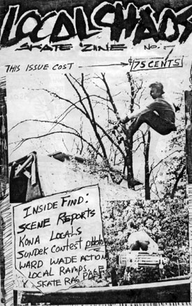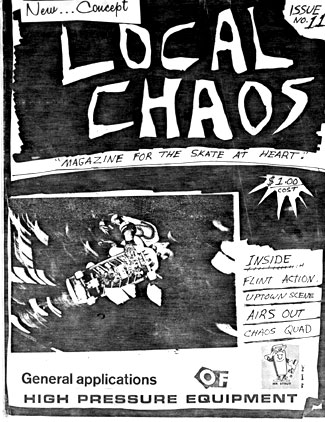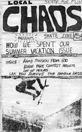Hello, my name is Wes and my friends and I published a 'zine back in the 80's called "local CHAOS". We had a way cool music and skate scene then and that gave us lots to write about. We wrote about our "skate missions", published letters and "scene reports" that skaters sent in , did some music reviews, skater art, skate spots, contests and sessions. Stuff like that. Anyway... fast forward 20 years and we now have a website based on those same ideas. Pretty much anything is a go here. So check out the flyers, stickers, music, videos , random artifacts and over 600 images in the various gallery sections. Anyone that I skated with in the past... PLEASE drop me a line. Would be cool to hear from you.