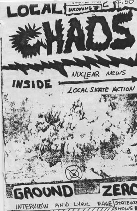 LocalCHAOS, the music zine, was trying to be a reflection of the bands we listened to, hungout with and to report on our local underground music scene. This was all made possible with the help of kids like Stephanie Watches (record reviews), Jamie Lewis, Alice Royston ("A2 Review" editor who got us some free printing), Rob Dahl (photos), Art Tendler (gave us one place to hangout), Lori Bizer (Schoolkids Records, "All Out Attack" on WCBN), Sean Carroll and Jerry Bush (JB) from "Isolated RAT Hearts" for their support. Thanks to all the skins, skaters, punks, mods, bored rich kids, homeless kids, hooligans, runaways, artists, poets and band members who gave us shit for the 'zine.