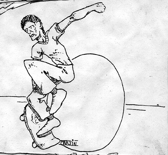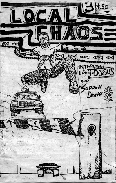 jeff martin. during the 80's, besides being a RIPPIN' skater and screamer did lots of artwork/drawings for "local CHAOS". He also did his own 'zine "skateboard action" and contributed a drawing that ended up being the logo for "Statement Records".