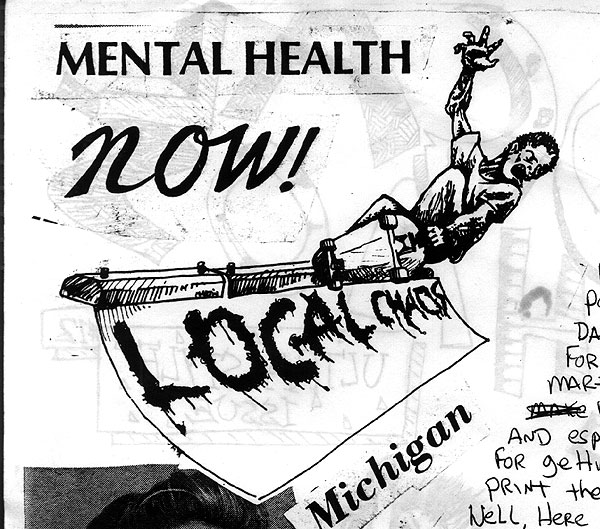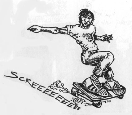This would be the first of two covers Jeff did for "local CHAOS". This is from issue #3. It pretty much reflected the attitude of the day. Ann Arbor cops hated us skaters and would hassle us all the time.