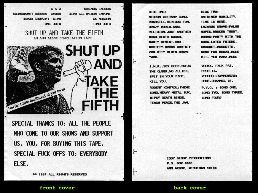 "SHUT UP AND TAKE THE FIFTH" is a compliation of Ann Arbor hardcore/punk bands. This